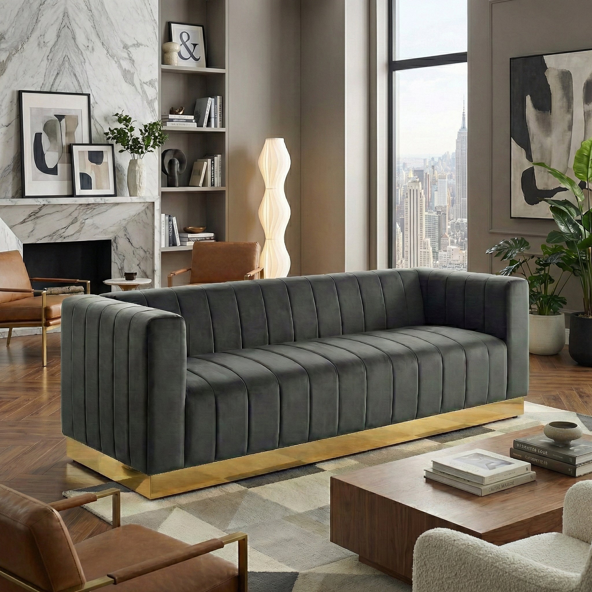 - Upholstered in luxurious velvet fabric for a classic and timeless look.