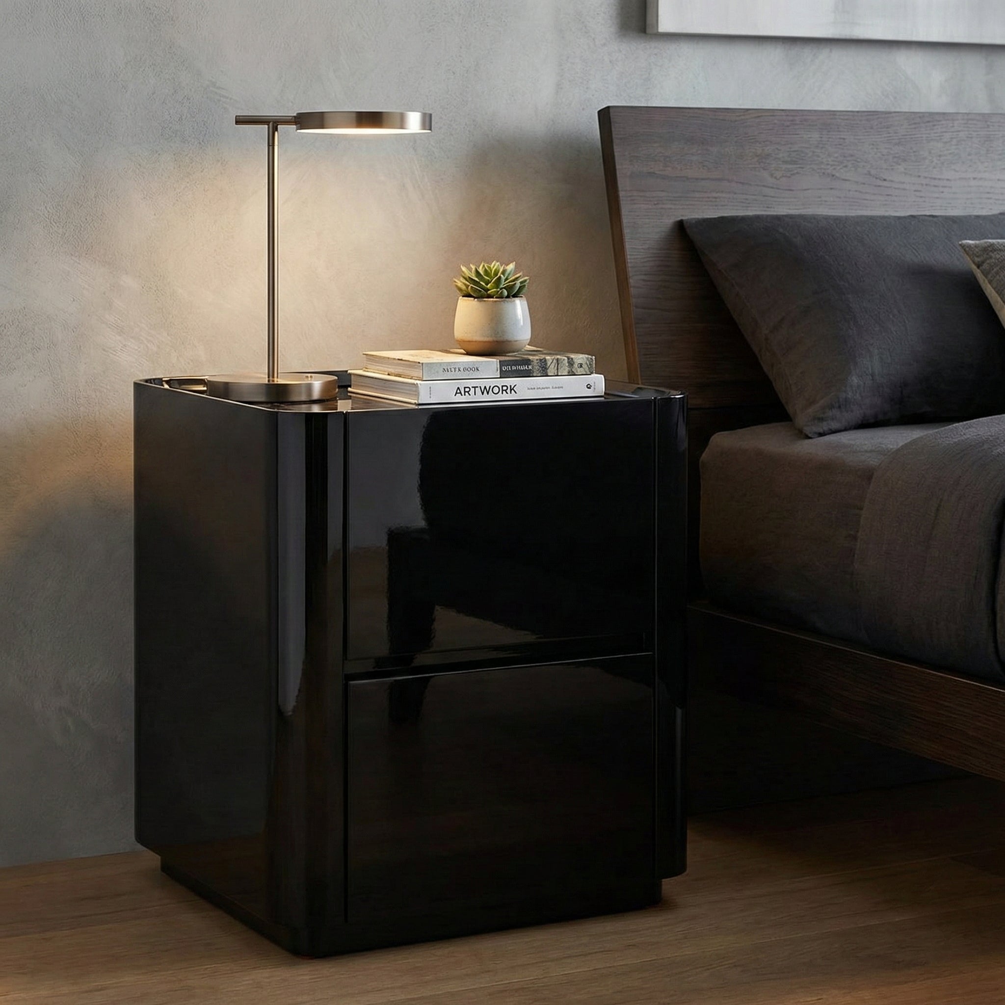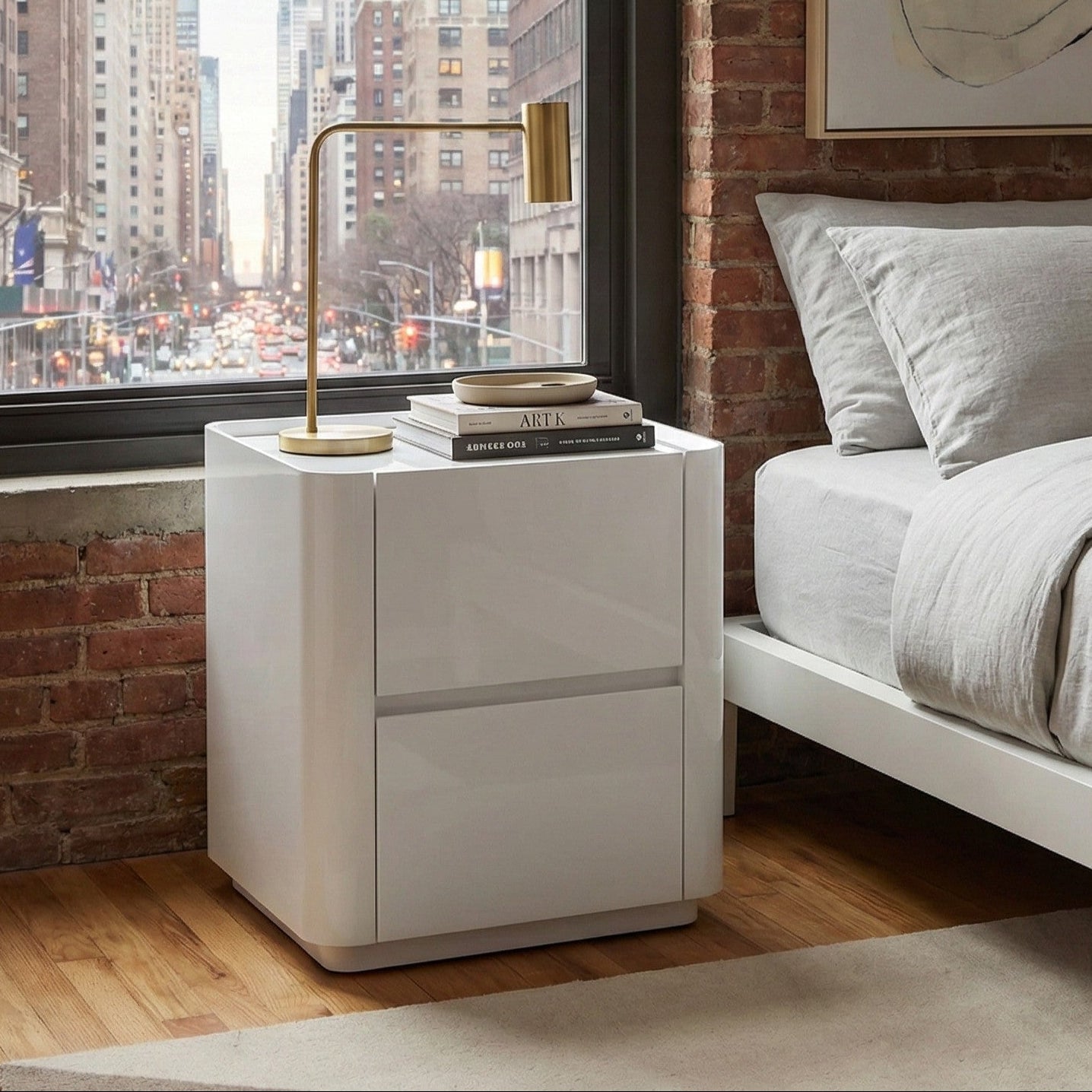 - High-gloss finish creates a sleek, modern aesthetic.